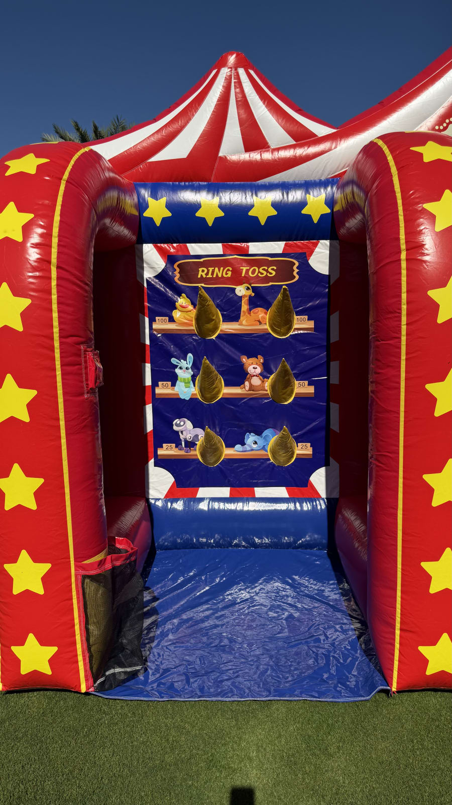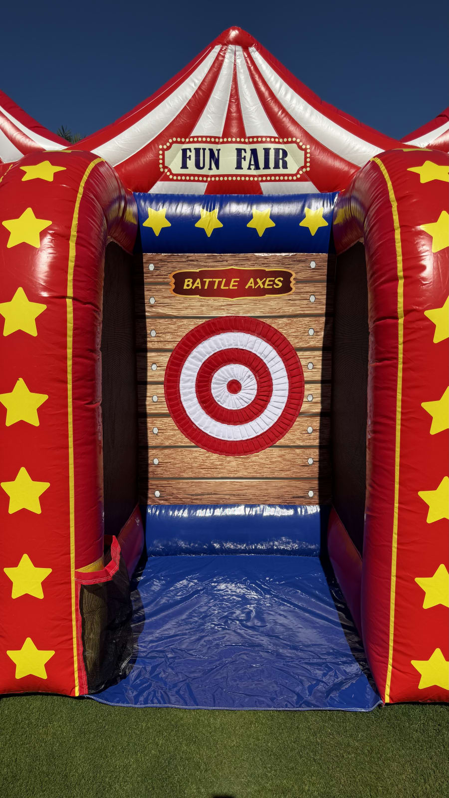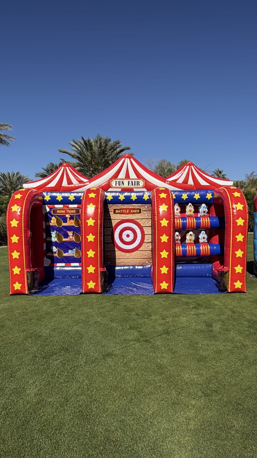 Fun Fair is an Inflatable 3 in 1 game built for big smiles. It combines ring toss, axe throw and down a clown for nonstop action. Designed for all ages, it fits backyard parties, festivals, school fairs and corporate family days. Available for events in Palm Springs and the Coachella valley. Fast setup. Eye-catching design. Safe play. 🎉