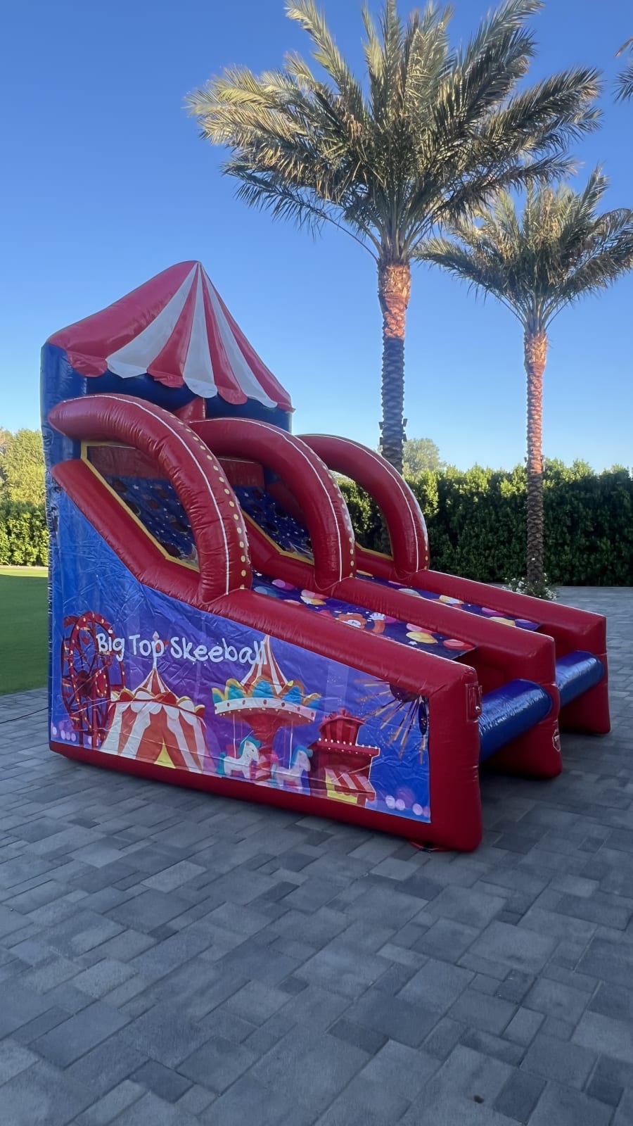 Bring fast-paced fun to your next party with the Big Top Skeeball. This inflatable carnival game delivers familiar skee-score excitement for kids, teens, and adults. Ready for festivals, birthdays, corporate events, and school fairs, it’s an inflatable carnival game built for all ages and fun. Book the Big Top Skeeball in Palm Springs and The Coachella Valley for reliable entertainment and crowd-pleasing action.