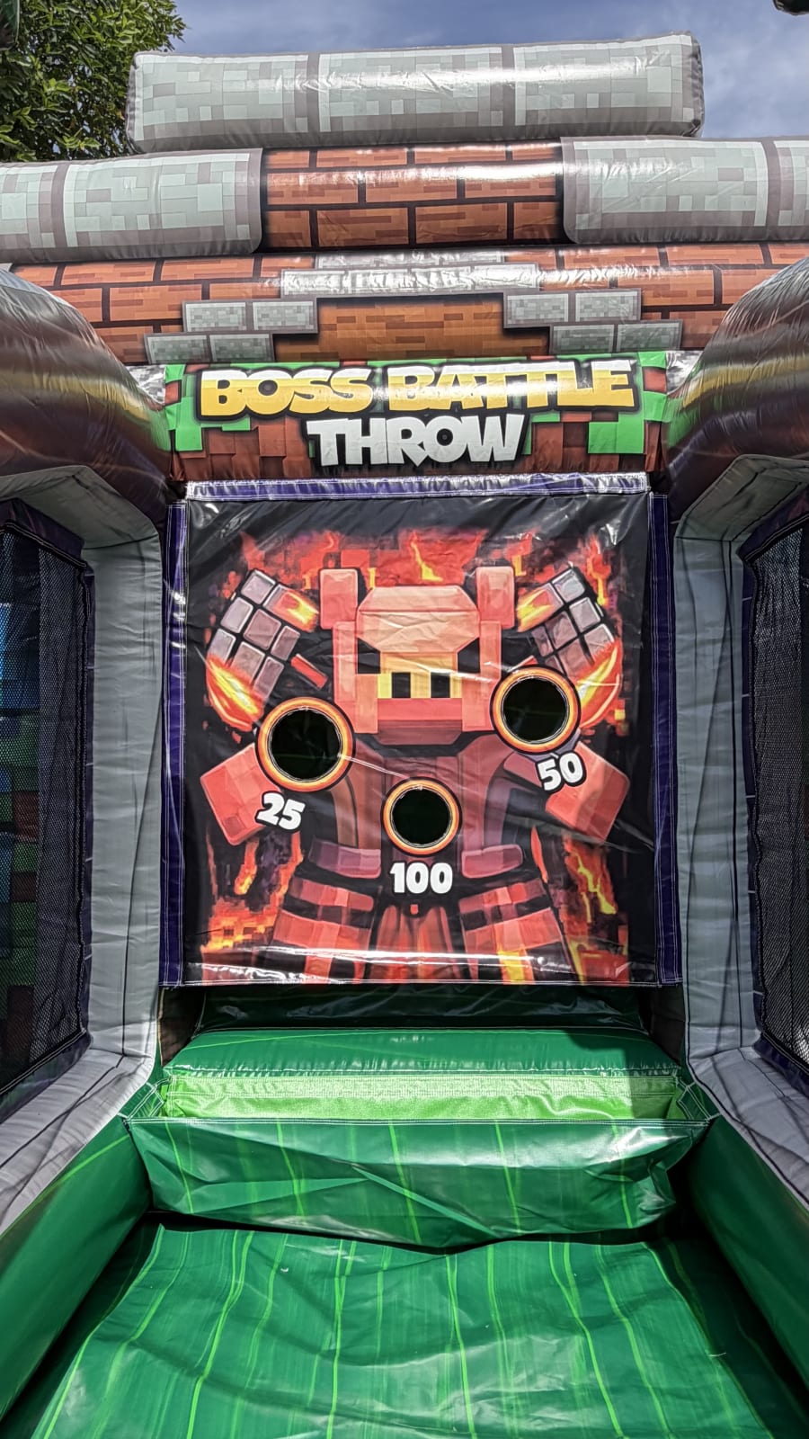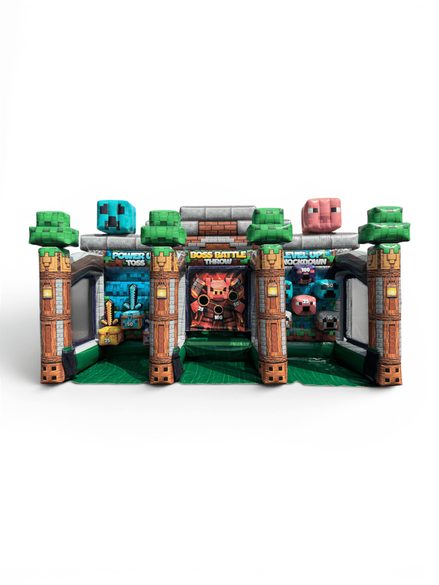 The Minecraft Challenge is a unique, fun rental that combines ring toss, ball toss and dart throw in one eye-catching unit. This Inflatable 3in1 game delivers nonstop entertainment for birthday parties, school events, corporate family days, and backyard fun. Quick to set up and built for safety, it’s suitable for kids and adults alike.